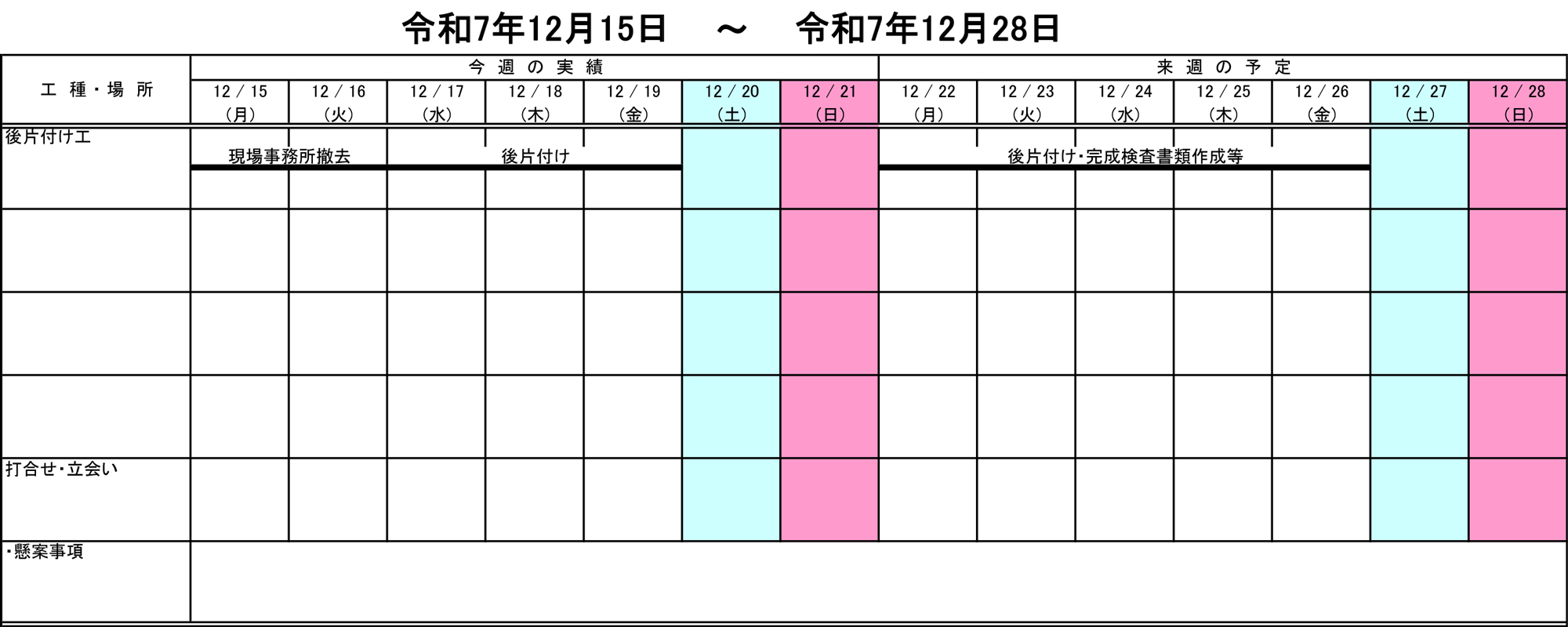 週間工程表